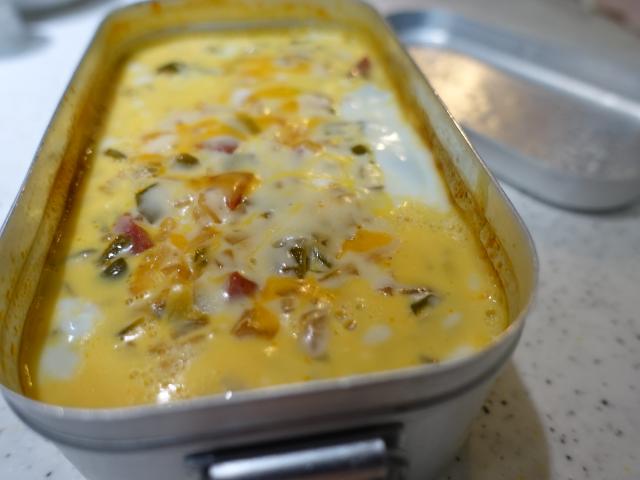炊飯と同時に出来上がるメスティン ご飯があれば10~15分で出来るフライパンVer どっちも甲乙つけがたし メスティンVer,はまだまだ改良の余地ありなのでもう少し精進します