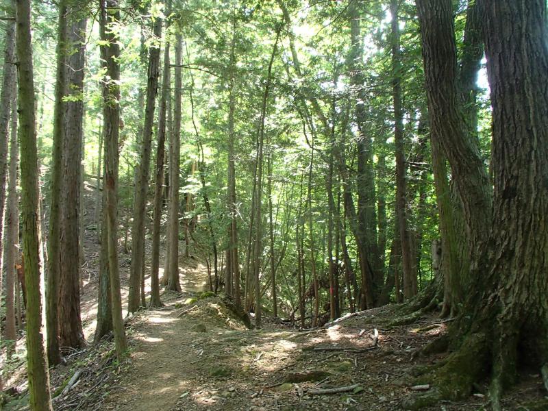 ・しばらく行くと車道に出合います。少し下って再度登山道に。ここからまた少し登りがキツくなりますがさほどしんどくはありません。その後また緩やかなコースになります。