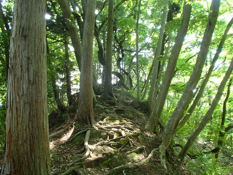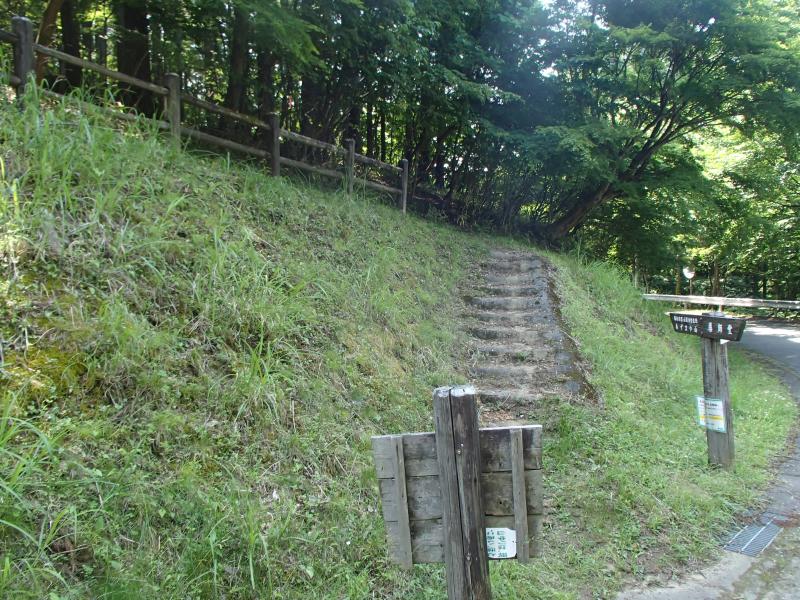 ・展望園地へのコースとと山頂へ向かうコースの分岐でちょっと迷いましたが、花の時期が終わっているので山頂へのコースを選択。ここからグッと登りが急になっていきます。