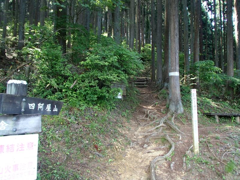 ・ここから薬師堂コースと鳥居山コースに分かれますが、今回は薬師堂コースで登ります。それにしても暑い・・・。樹林の登り、しかも無風。汗が滴り落ちてきます。