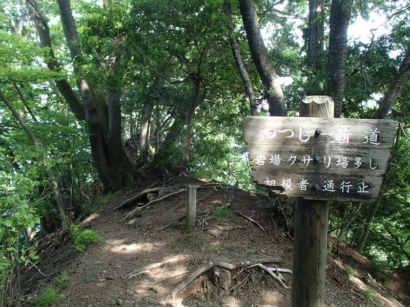 ・奥宮~山頂まではちょっとした鎖場、岩場の登りです。最初は鎖場ですがさほど急ではないので問題なし。そこからは急な岩場の登りになります。短いですが中々楽しい。登り切るとつつじ新道との合流点です。ここから山頂までは目と鼻の先です。