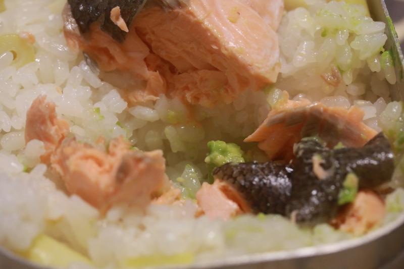 兵庫県は縦に長く、前回の山での「スズコ」と兵庫の鮭で炊き込みご飯を作りました