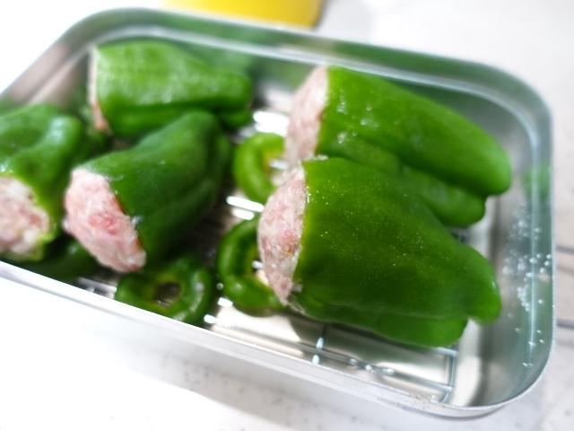 メスティンラージを蒸し器にして焼かないヘルシー肉詰めピーマンを作ってみました