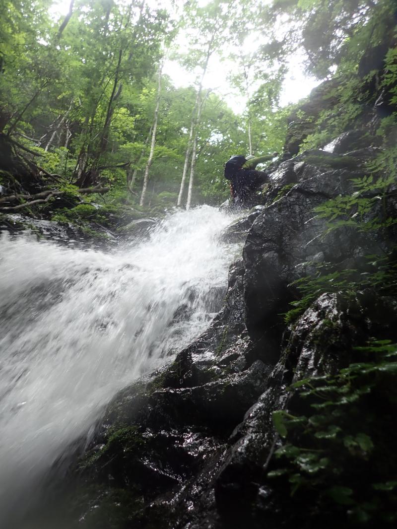 本に記載の18m美瀑は、右岸を高巻くとありますが、ここはぜひ直登していただきたい滝です。