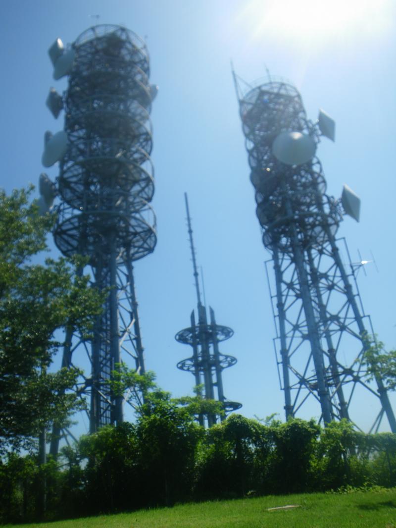 ➄三ヶ根山最高峰には電波塔が立ち、三ヶ根山スカイライン第一展望台からの荒れた遊歩道か殉国七士廟へのアプローチ道とスカイラインの合流点からの遊歩道を登るとよい