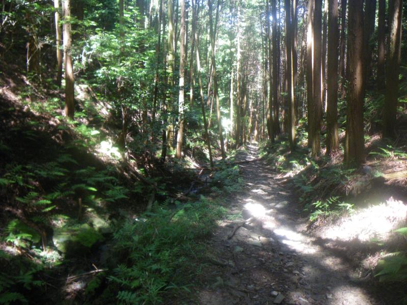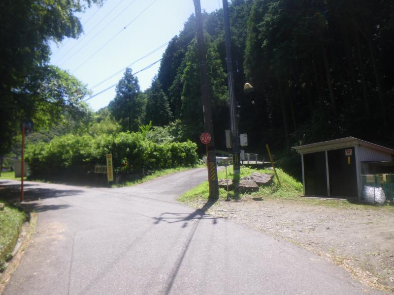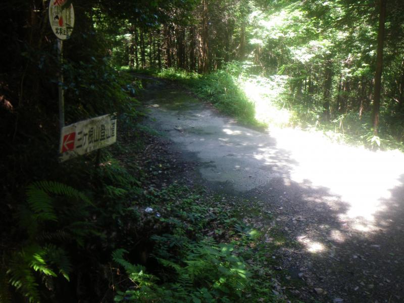 ➂右周回の場合、標識はなく、舗装林道を目印の中電施設まで進み、そこから右の未舗装林道を進むと、殉国七士廟へでます