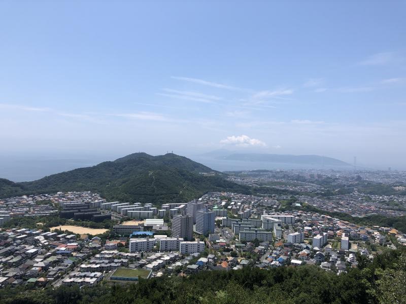 ・栂尾山頂上に展望台があり、西に淡路島や明石海峡大橋、東に和田岬からポートアイランドや神戸市街地がよく見えます。