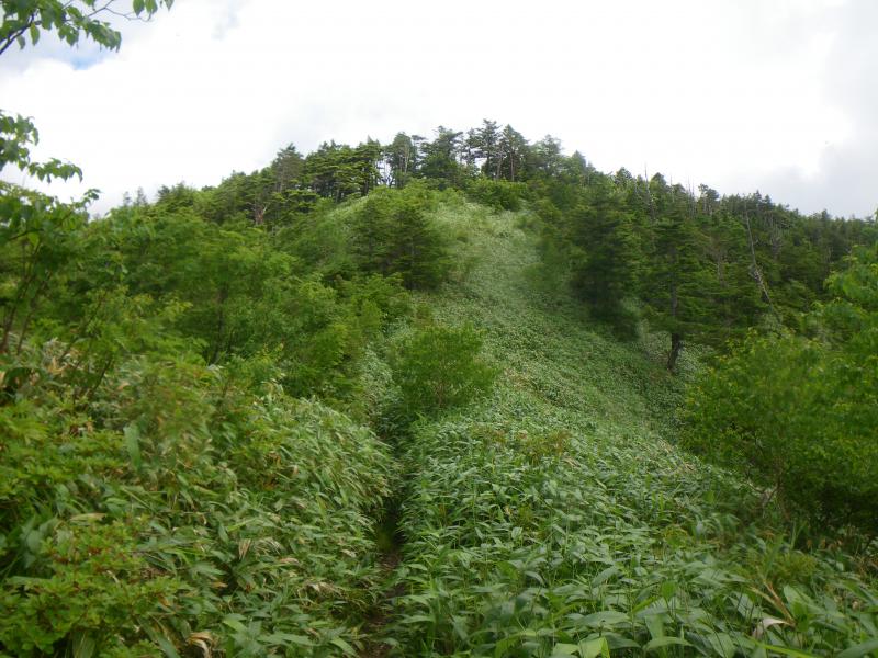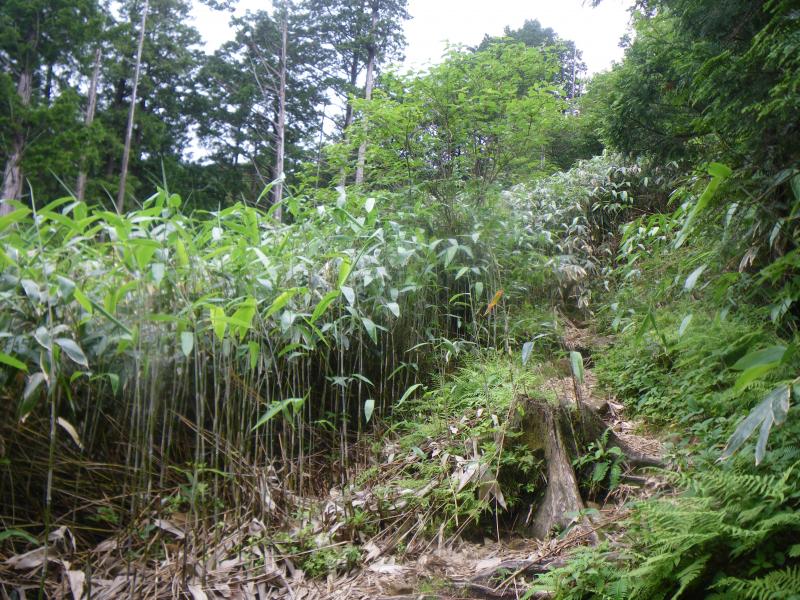 ➆鎧岩から先は笹が深くなり、体を触れるくらいの高さがある箇所もある