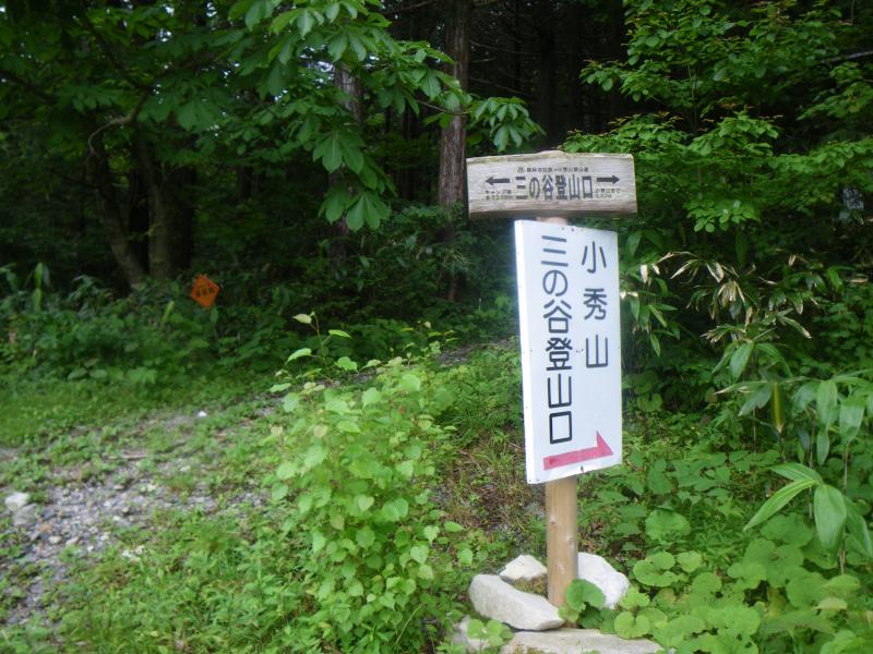 - 乙女渓谷キャンプ場(35分)三の沢登山口(115分)二の沢分岐(15分)カモシカ渡り(20分)ニの沢分岐(21分)鎧岩(60分)小秀山(1分)秀峰荘(60分)鎧岩(15分)ニの沢分岐(90分)三の沢登山口(27分)乙女渓谷キャンプ場