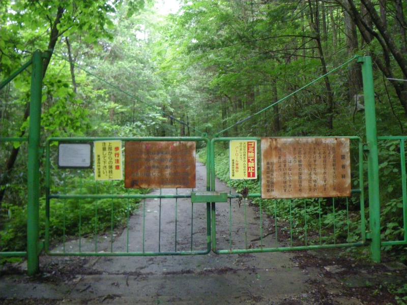 ➁乙女渓谷からしばらく林道を進むとゲートがあり、これを超えると途中から未舗装で三の谷登山口まで続く