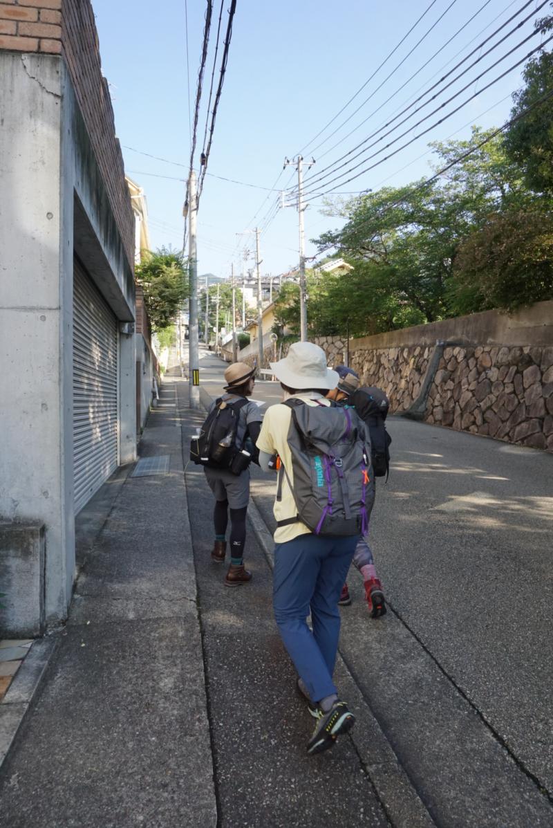 登山口までは住宅街を縫うように歩きます。アスファルトの照り返しと闘いながら登山口に到着しました。