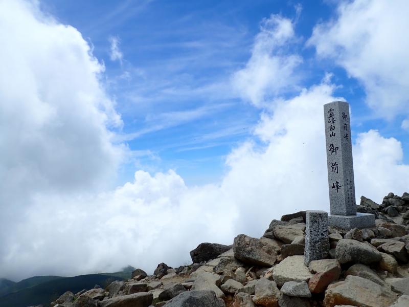 山ご飯の後、蛇に励まされて御前峰に無事登頂。