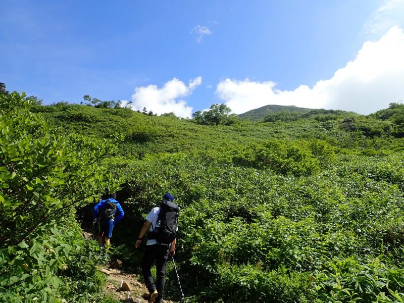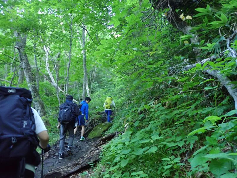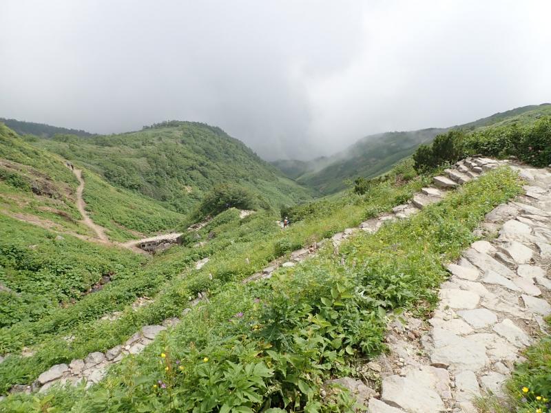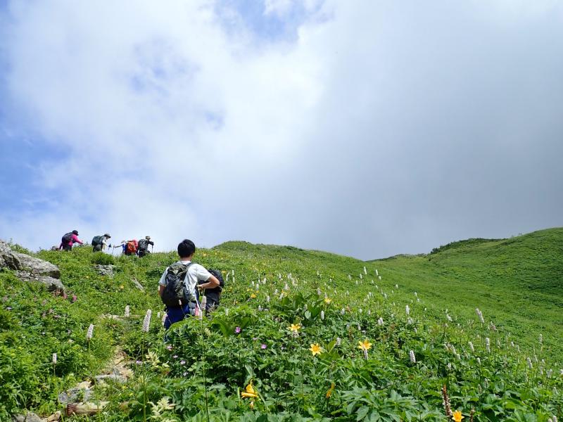 - 観光新道は登りはじめ急ですが、尾根に出ると展望良くお花畑が広がります。