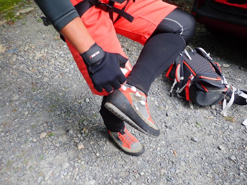 全身が濡れる沢登りでは、休憩時、待機時の防寒対策は必須であると、強く実感しました。