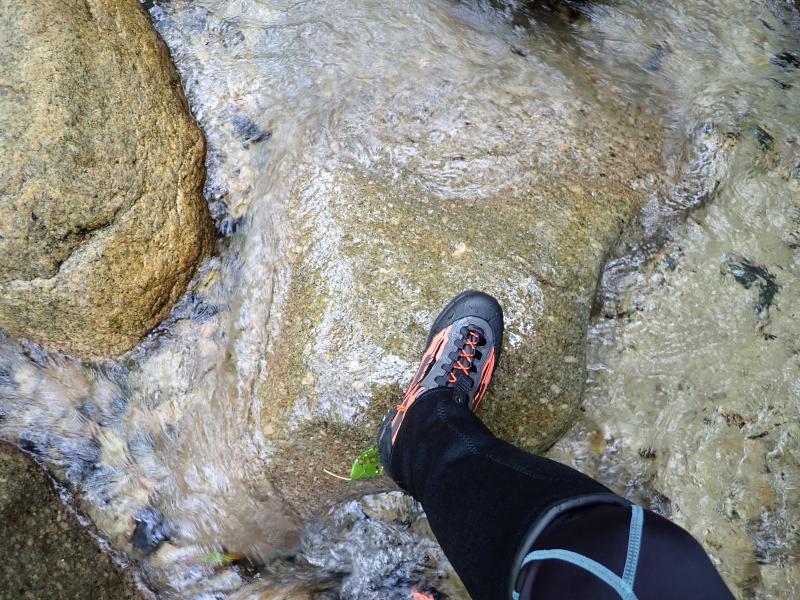 私は今回フェルトの沢靴を装備しましたので、比較的滑りにくかったのですが、足場選びや岩場の一点をとらえる感覚はクライミングと近く、改めてクライミング技術が問われると実感しました。