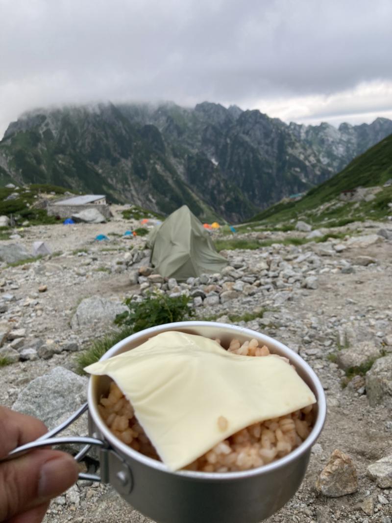 登れなかった八ツ峰を眺めながらの夜ご飯は悔しくも感慨深いものがありました。
