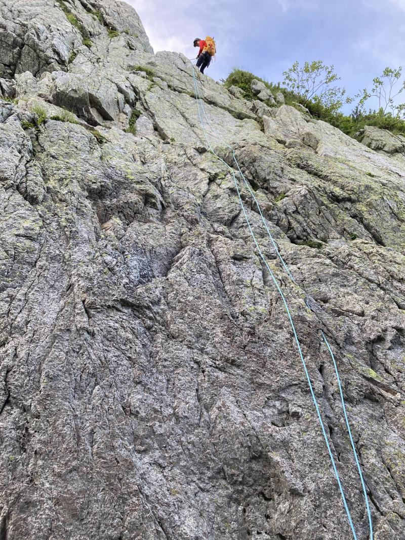 残置スリングを使いながら、3回の懸垂下降を経て無事取りつきまで。