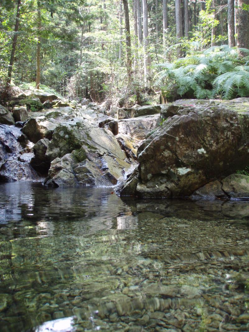- 赤熊・登山口~5分~入渓地点~90分~音羽の滝~40分~二俣~60分~赤熊・登山口