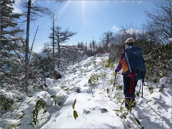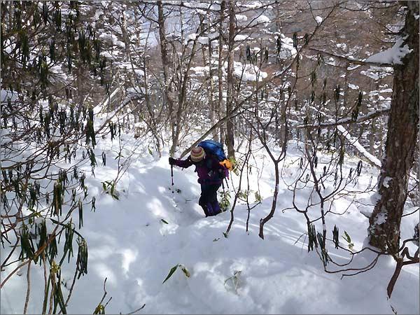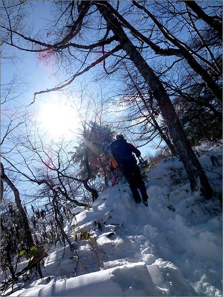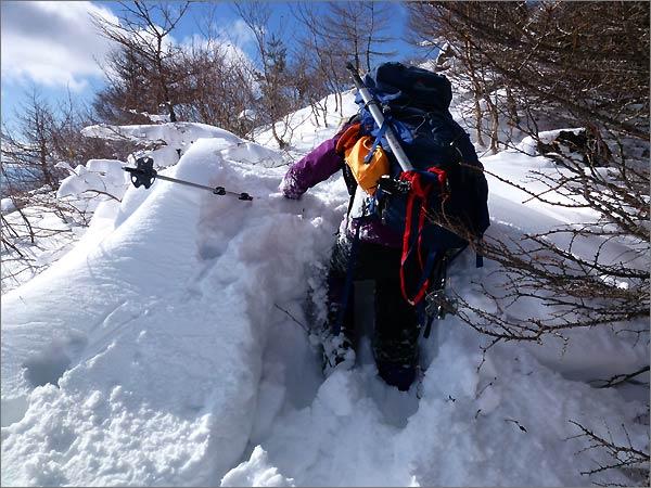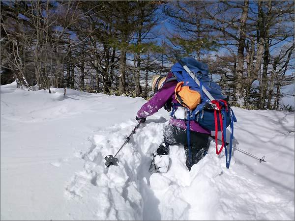 ここまでくるとトレースが無い個所も多いので、自分で雪をかき分けて上がっていくのですがこれが面白かったです。
