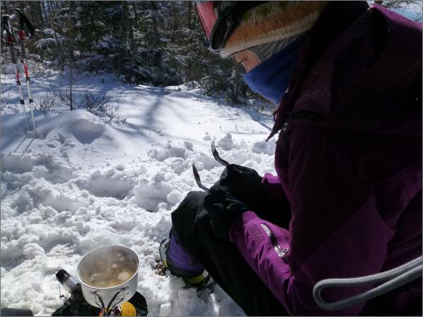 雪はふかふかで、まるでお菓子のメレンゲみたい。トレースをたどりつつも、メレンゲの様な雪を楽しみました。