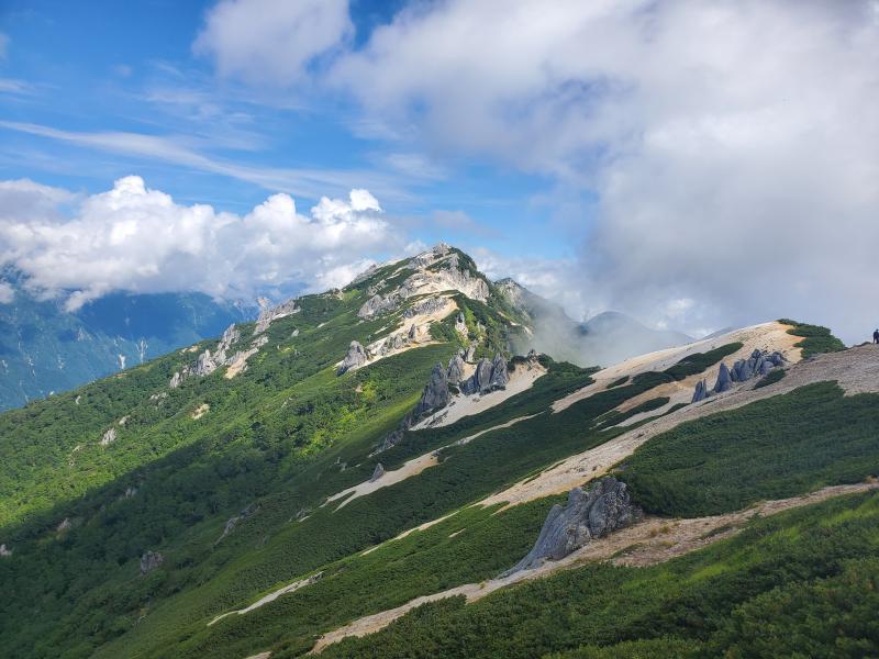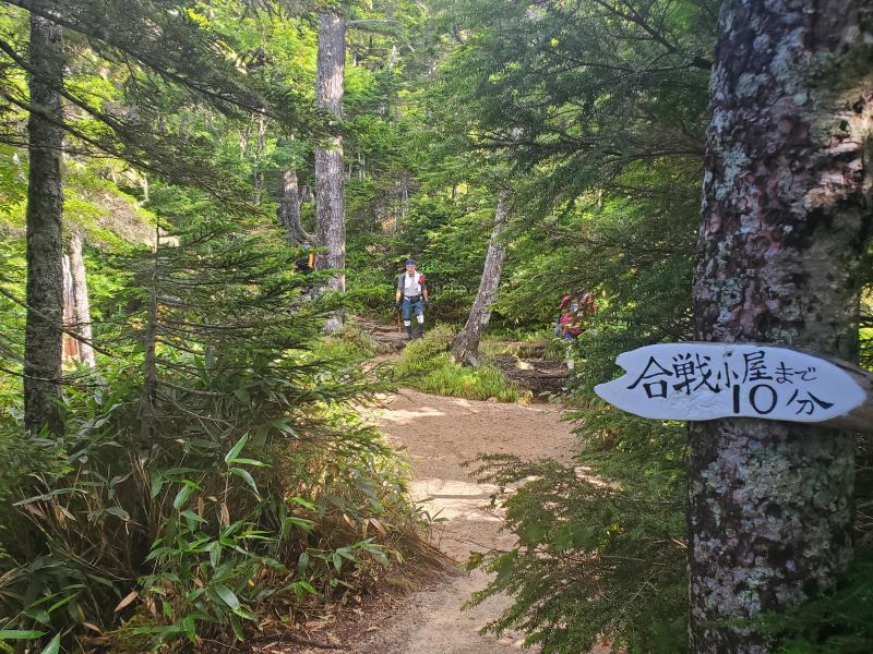 - 中房温泉-(60分)-第二ベンチ-(60分)-富士見ベンチ-(30分)-合戦小屋-(60分)-燕山荘-(20分)-燕岳山頂-(20分)-燕山荘-(120分)-中房温泉