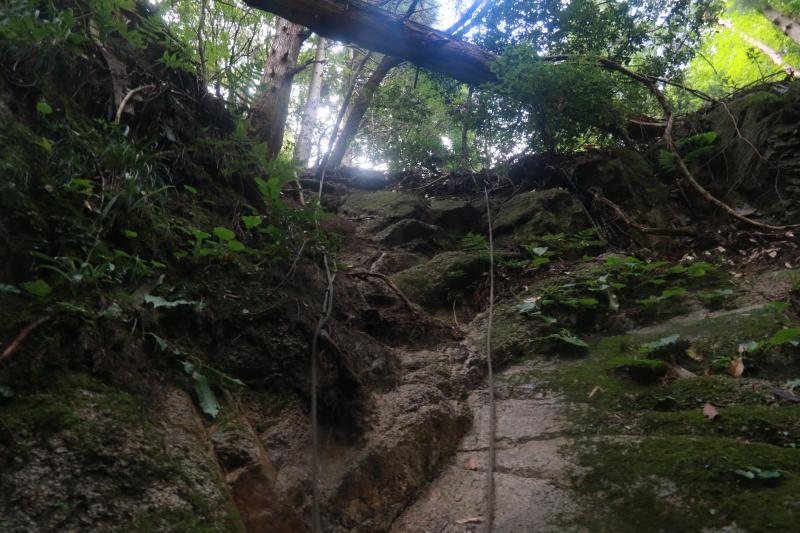 分岐から雨が降りだし、掬星台で土砂降りでした。(天気図から分かっていましたが、かなりの雨でした)少し雨が落ち着いたので山寺尾根から下ります。急下りですが、尾根なので幾分雨はましでした。