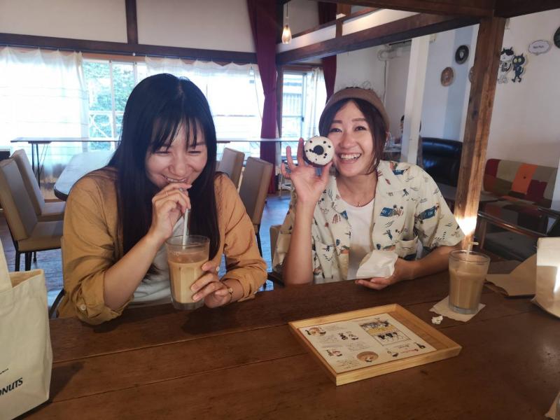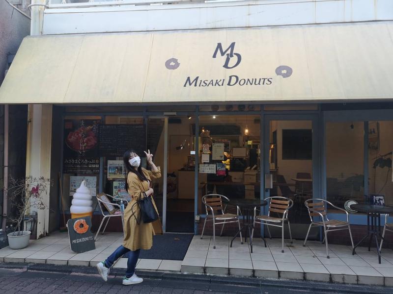 お腹はすっかりたぽたぽ、腹ごなしに向かったのは産直センターうらりマルシェ。まぐろきっぷで様々な海産物や地物の加工品などと交換できるのですが、やっぱり甘いものに目がない私達。最後に『ミサキドーナツ』へ立ち寄り、好きなドーナツとドリンク、かわいいトートバッグと交換することにしました。