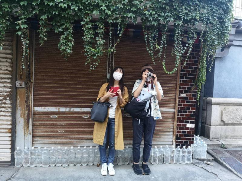 お喋りしながら電車に揺られていると、あっという間に終点の三崎口駅に到着。そこからバスに乗り換え玄関口の三崎港まで約20分。バスの扉が開くとふんわりと磯の香りが漂ってきました。青い空、白い入道雲、そして目の前に輝く海!夏休みを絵に描いたような光景に、皆気持ちが高揚してはしゃぎまくり。まぐろ丼のお店まで大して歩かないのに、あっちやこっちで立ち止まっては写真をパシャリ、だいぶ時間をかけてランチ場所までやってきました。