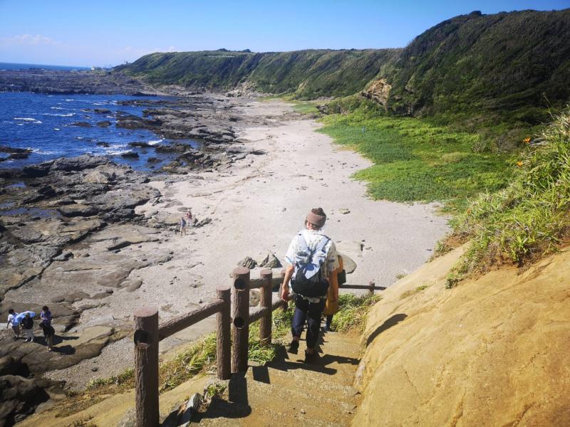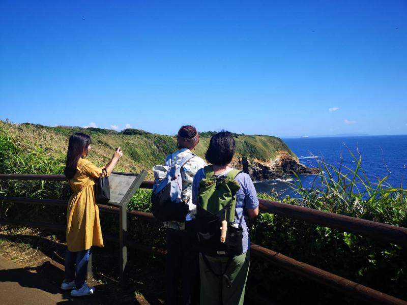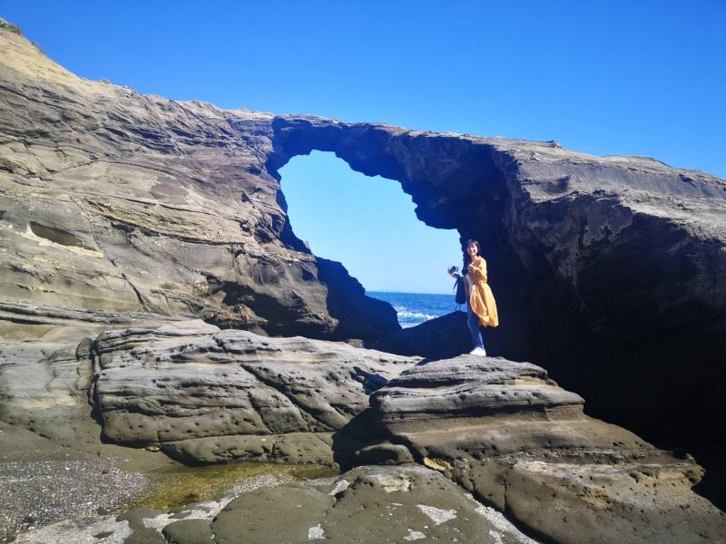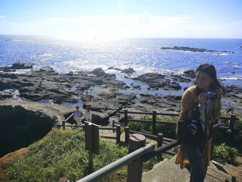 城ヶ島は三浦半島の先にある周囲4kmの島で、船はもちろん橋を渡れば徒歩や車で通行することもできます。波の浸食が造り出した岩壁や奇岩は、まるで海外のリゾート地のような雰囲気。冬にはウミウが飛来し、水仙が咲き誇る自然いっぱいの小さな島です。城ヶ島を代表する映えスポット・馬の背洞門を見に、午後の暑い日差しを浴びながら海岸へと下って行きました。
