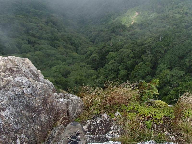 ・洞辻茶屋辺りから雲行きが怪しくなり始め、修験場である鐘掛岩では完全にガスが掛かってしまい、展望が・・・。これも登山あるあるなので仕方ない。鐘掛岩は裏からでも回れるが、直登。修験を身を持って体験。