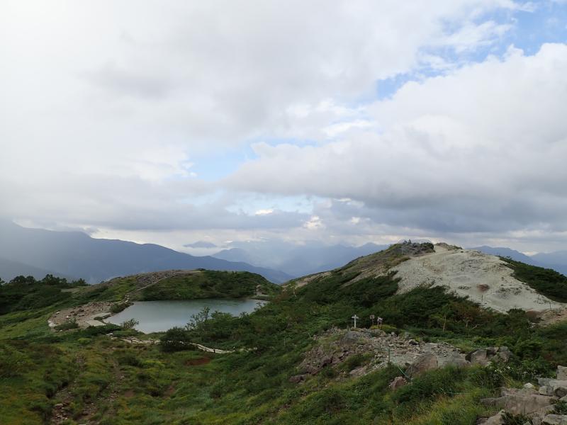 八方池着いたときは雲が多く、池面に白馬連峰が見れなく残念でしたが、唐松岳山頂からは雲の切れ目に唐松山荘・白馬が少し見え、楽しい山でした。