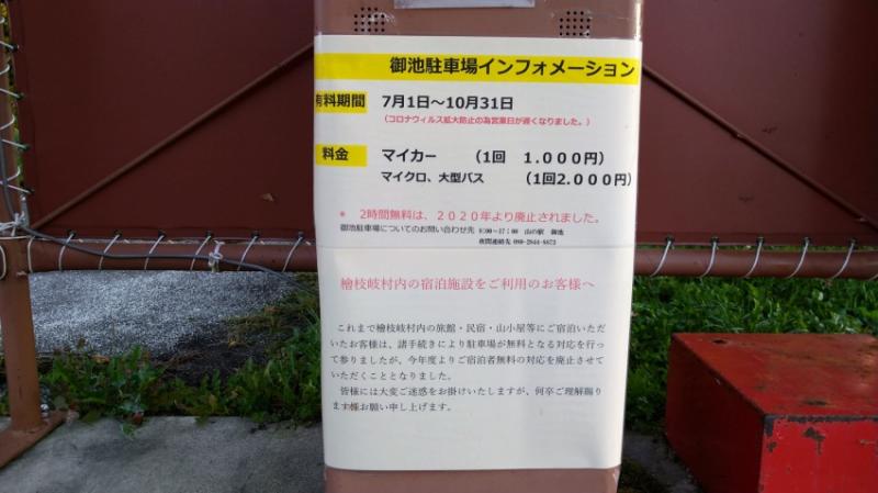 見晴キャンプ場は無料休憩室(現在は閉鎖中)、きれいな水洗トイレ(全然臭くない!!1回につき100円の協力金が要る)、水場(飲用可、洗い物不可)があり、一人800円で幕営できます。
