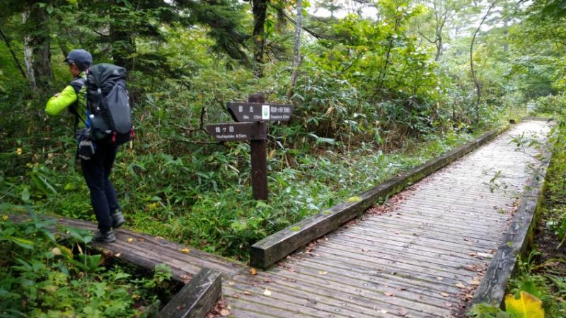 木道(壊れている箇所有り)と多少のぬかるみはあるものの概ね歩きやすいルート