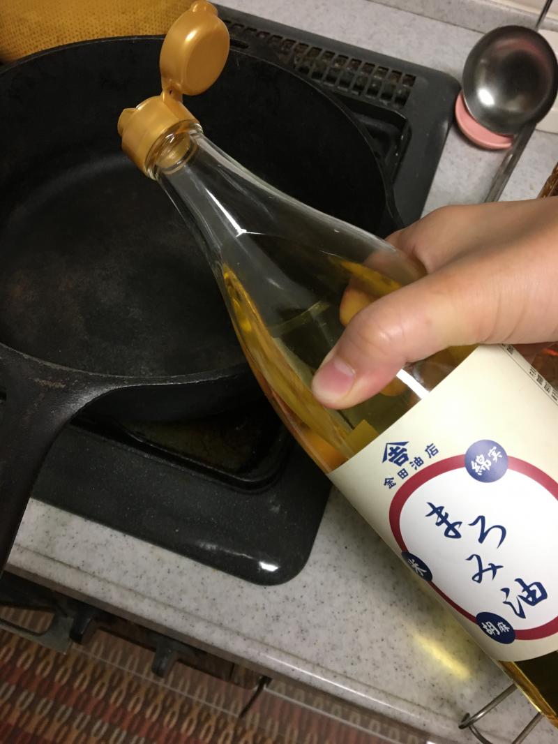 ④具材を炒め終わったら、お酢、みりん、しょうゆ(1:1:1の割合で)をいれて中火で煮ます。
