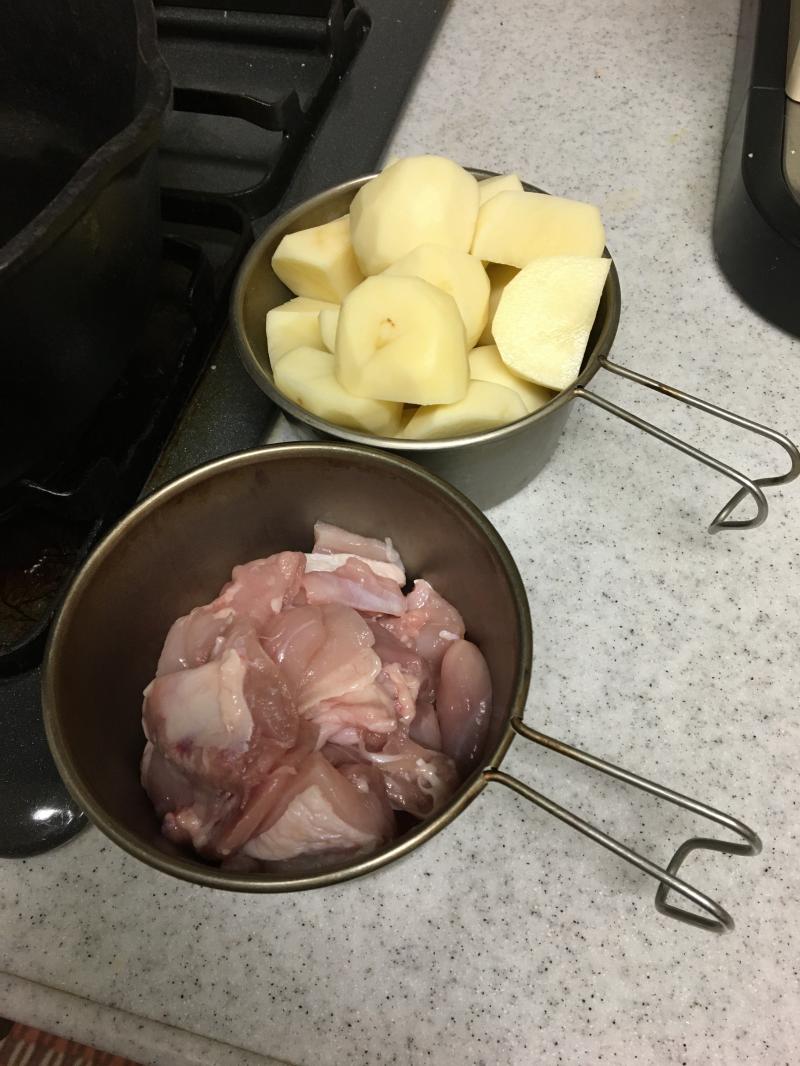 作り方 ①鶏肉とじゃがいもは一口大にカットします。
