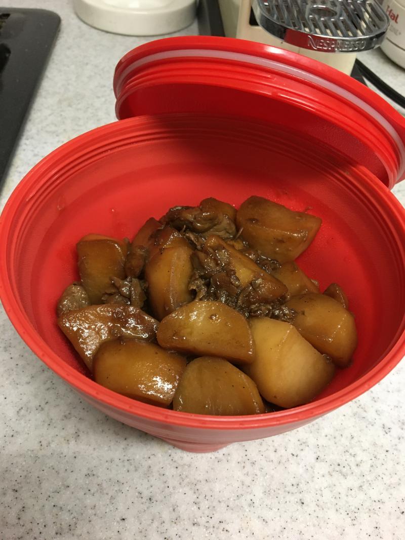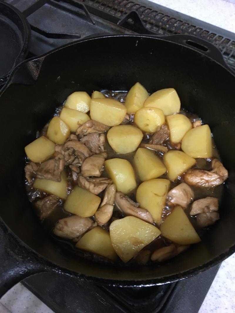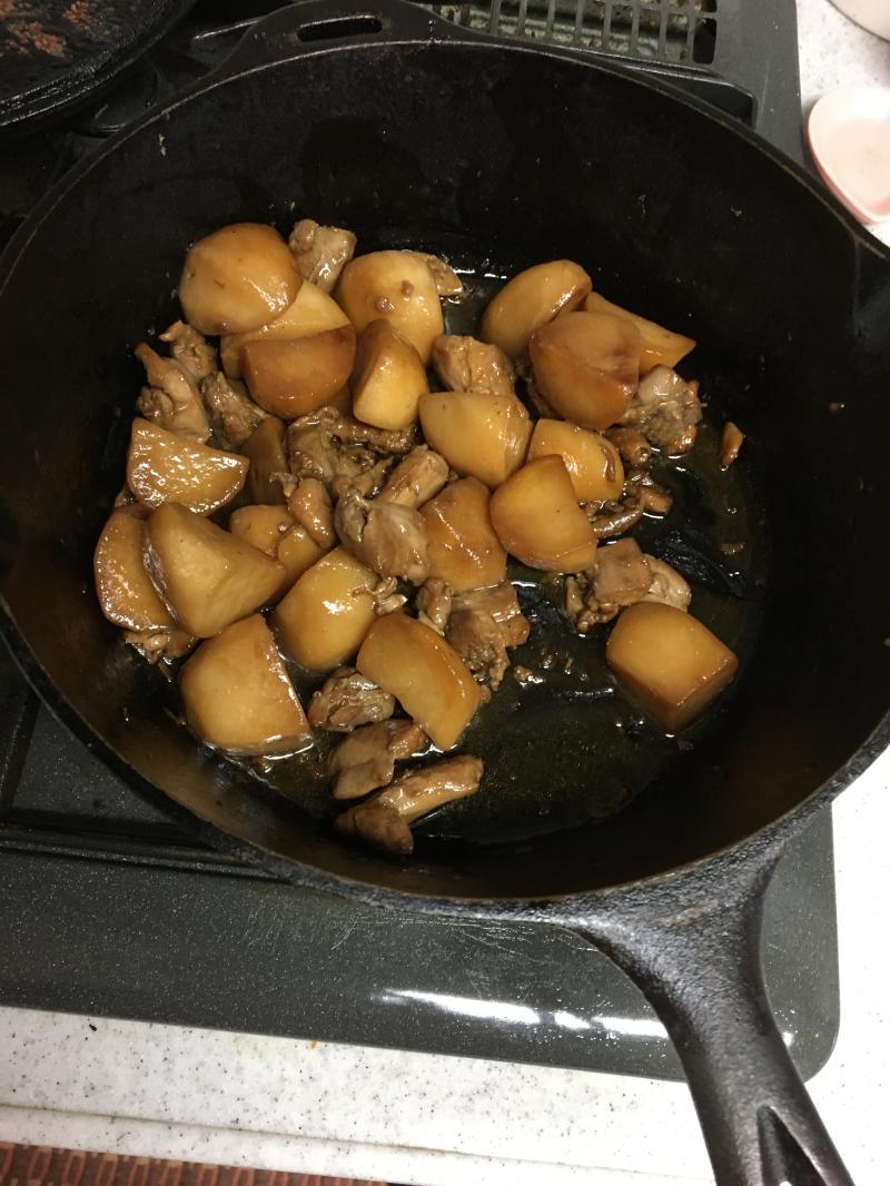以上です。簡単ですが、さっぱりしていておいしいです。老若男女みんな好きな味なので、差し入れなどにするととても売れます。肉は豚でもおいしいです。いもは炒めずに調味料を入れるタイミングで入れて煮るとさらにさっぱりした味になります。その際はすぐに煮えるように太めのいちょう切りくらいに切って下さい。