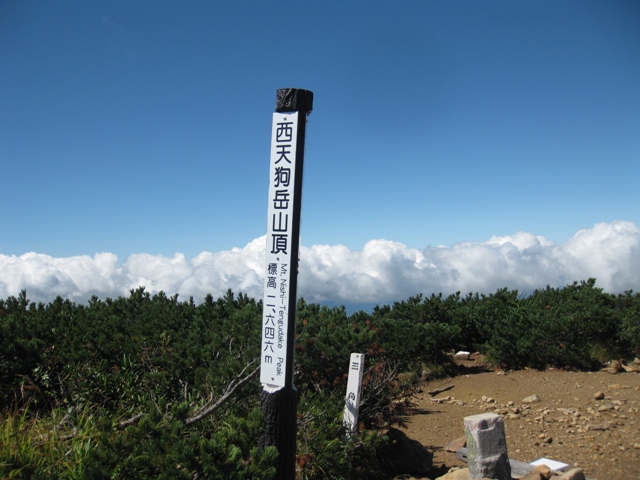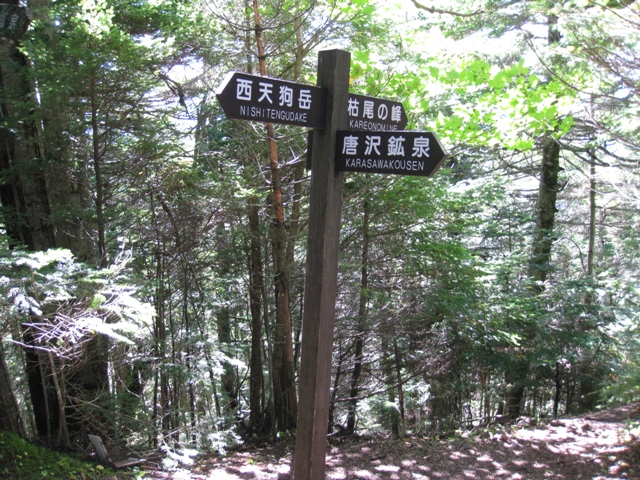 - 唐沢鉱泉登山口-(2時間15分)-黒百合平-(1時間10分)-東天狗岳-(20分)-西天狗岳-(2時間30分)-唐沢鉱泉分岐