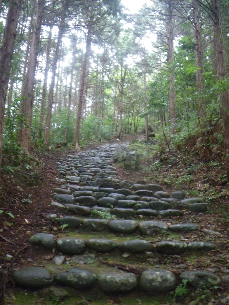 ➂星神社の参道は丸い川の石が敷き詰められいるが、これがまた滑ります