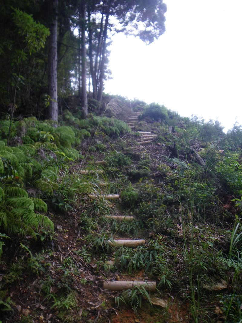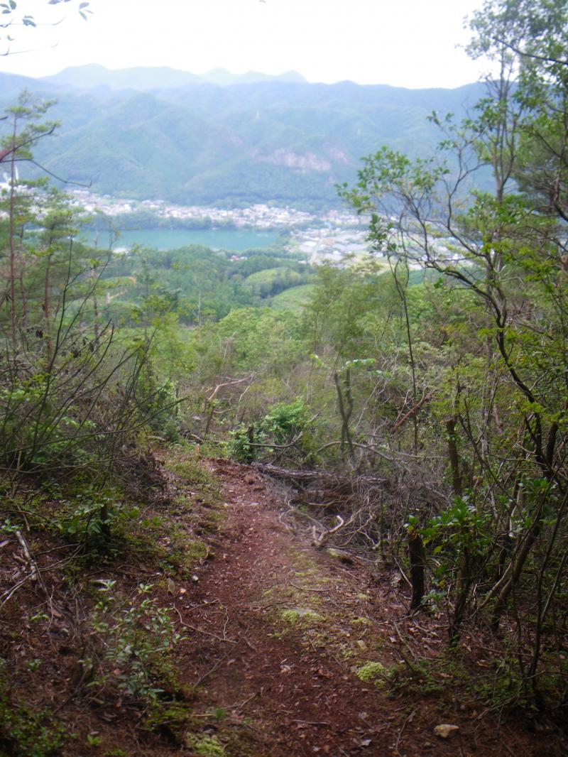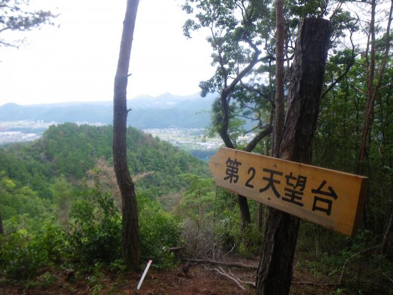 ➆登山道は整備されていて、第一天望台・第二天望台と川辺の街並みが見える