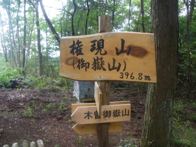 権現山(ごんげんやま・397m)は地元では御嶽山と呼ばれているが、御嶽神社が山頂に祀られているからと思います。実際、「麻利支天」や「覚明行者」といった石碑があり、また展望岩からは御嶽山の遥拝場所があります。