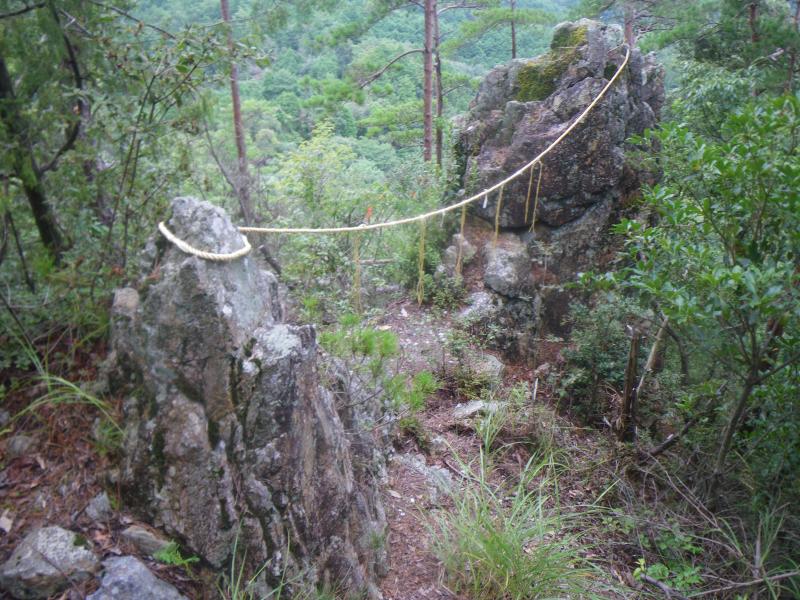 ➇山頂から踏み跡をたどり、夫婦岩の先に御獄が見える?展望所があるが、今回は見れなかった