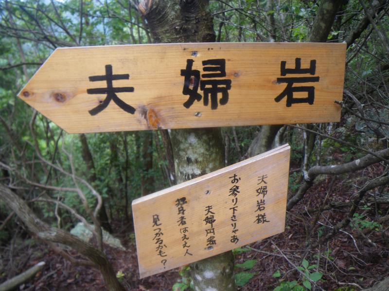 「夫婦岩様 お参りくださりゃ 夫婦円満 独身者はええ人 見つかるかも」