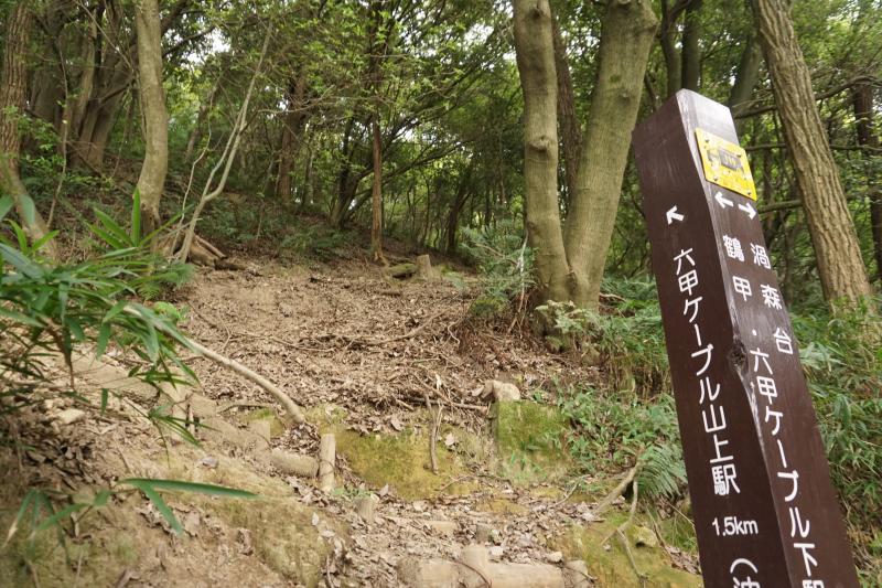 - 六甲ケーブル下~(60)~ケーブル山頂駅~ガーデンテラス(60)六甲山頂(50)筆谷道分岐(45)瑞宝寺公園(20)有馬バス停