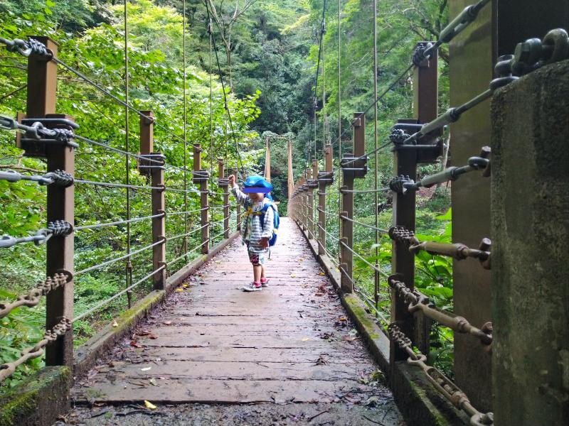 谷が急になので小さな子供は山側を歩かせるようにしたい。