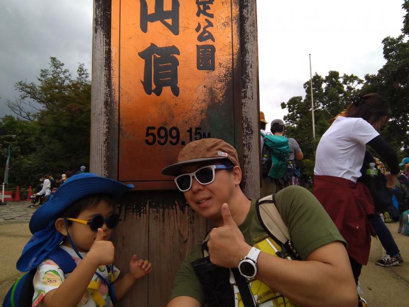 元気いっぱいに歩いた息子と山頂で写真を撮ったら
