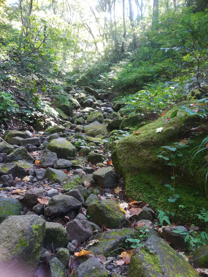 登山口から30分ほど石がごろごろとしたやや急な斜面を歩くのでいきなりきついです。