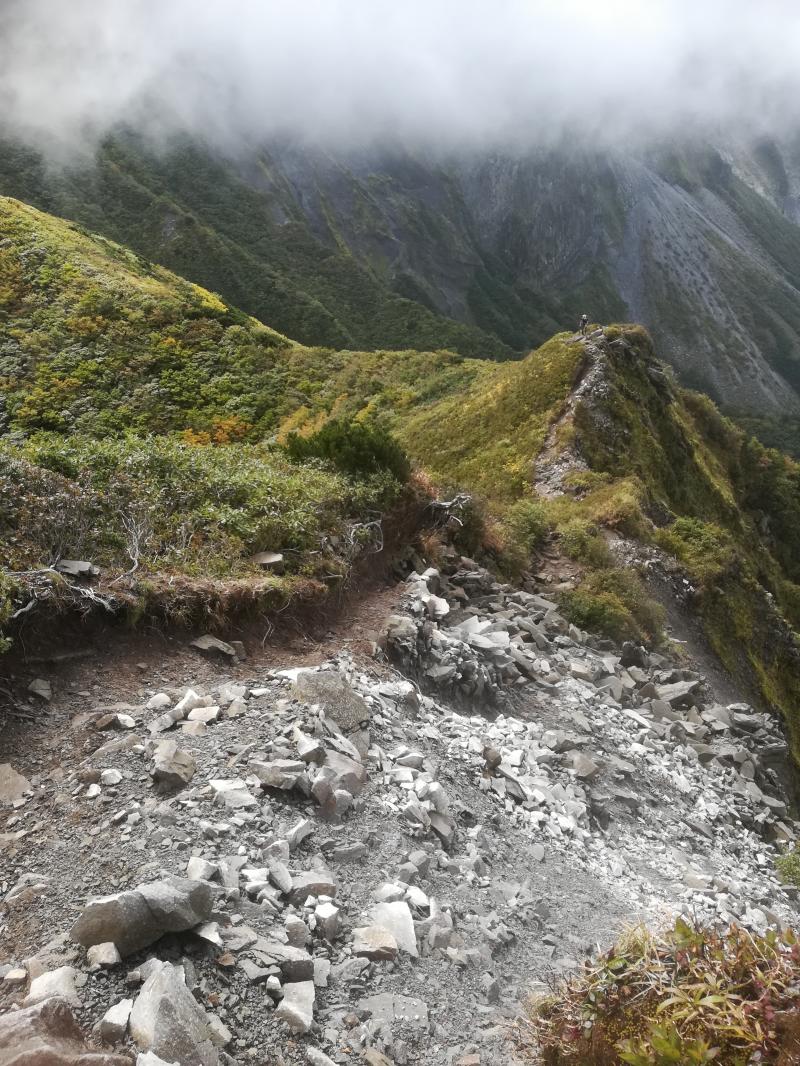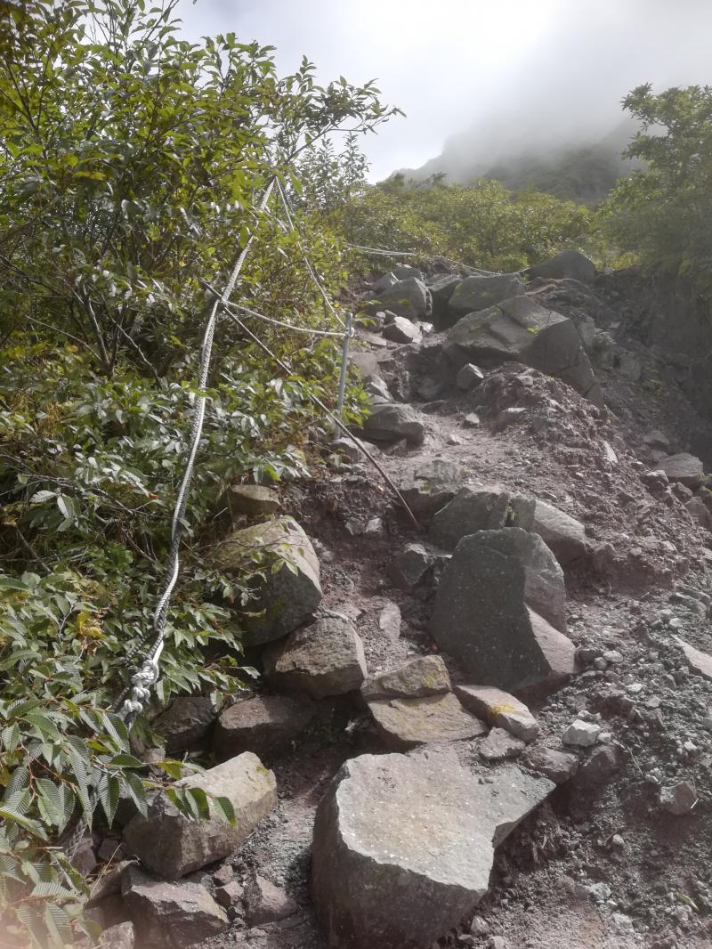 その後はしばらくなだらかになりますが、また傾斜がきつくなり、崩落した箇所もあり