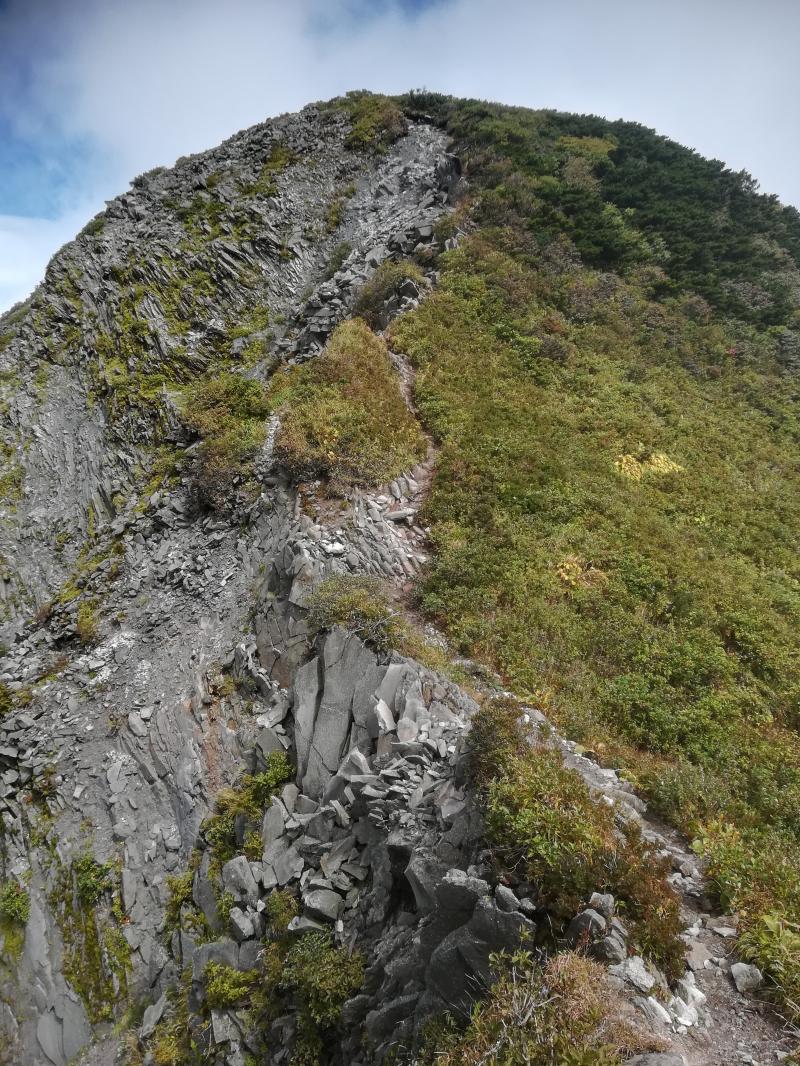 三鈷峰の核心部は途中の崩落個所と山頂手前の岩場の崩落個所です。