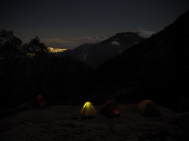 後輩が来るのを待ちに待ち…手洗いしてテント受付します。外から見るとなかなかワイルドなトイレは第一、第二小屋のすぐ近く、テント場は梯子を登って5分ほど歩いたところです。鳳凰三山が良く見える第一テント場へ幕営。この日は第一、第二テント場合わせて6張でした。少し昼寝して夕飯準備を。久しぶりにアルファ米とコンソメで野菜スープを(写真にはありません)。