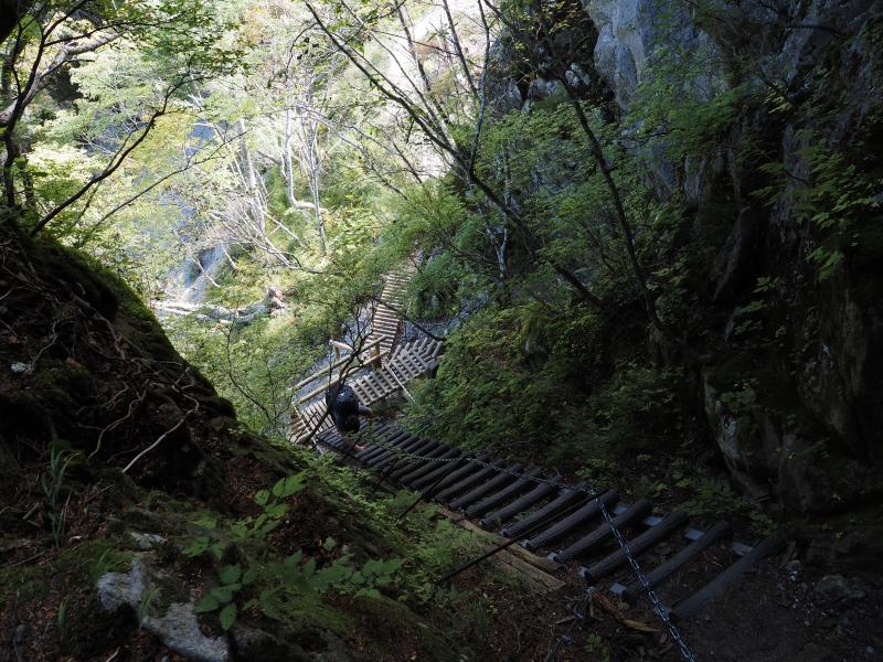 - 刃渡りは両側が切れ落ちていますが、しっかり鎖があるので安心です。